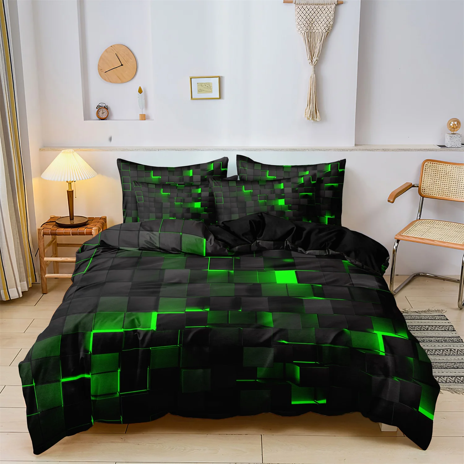 Made of high quality polyester fabric that is soft, durable and breathable. This Duvet set is designed to provide maximum comfort and warmth, making it perfect for all seasons. It is hypoallergenic and gentle to the skin ensuring a comfortable and cozy night's sleep. It is easy to maintain, can be machine washed and tumble dried. The fabric is colorfast and durable and retains its softness and texture after multiple washes.