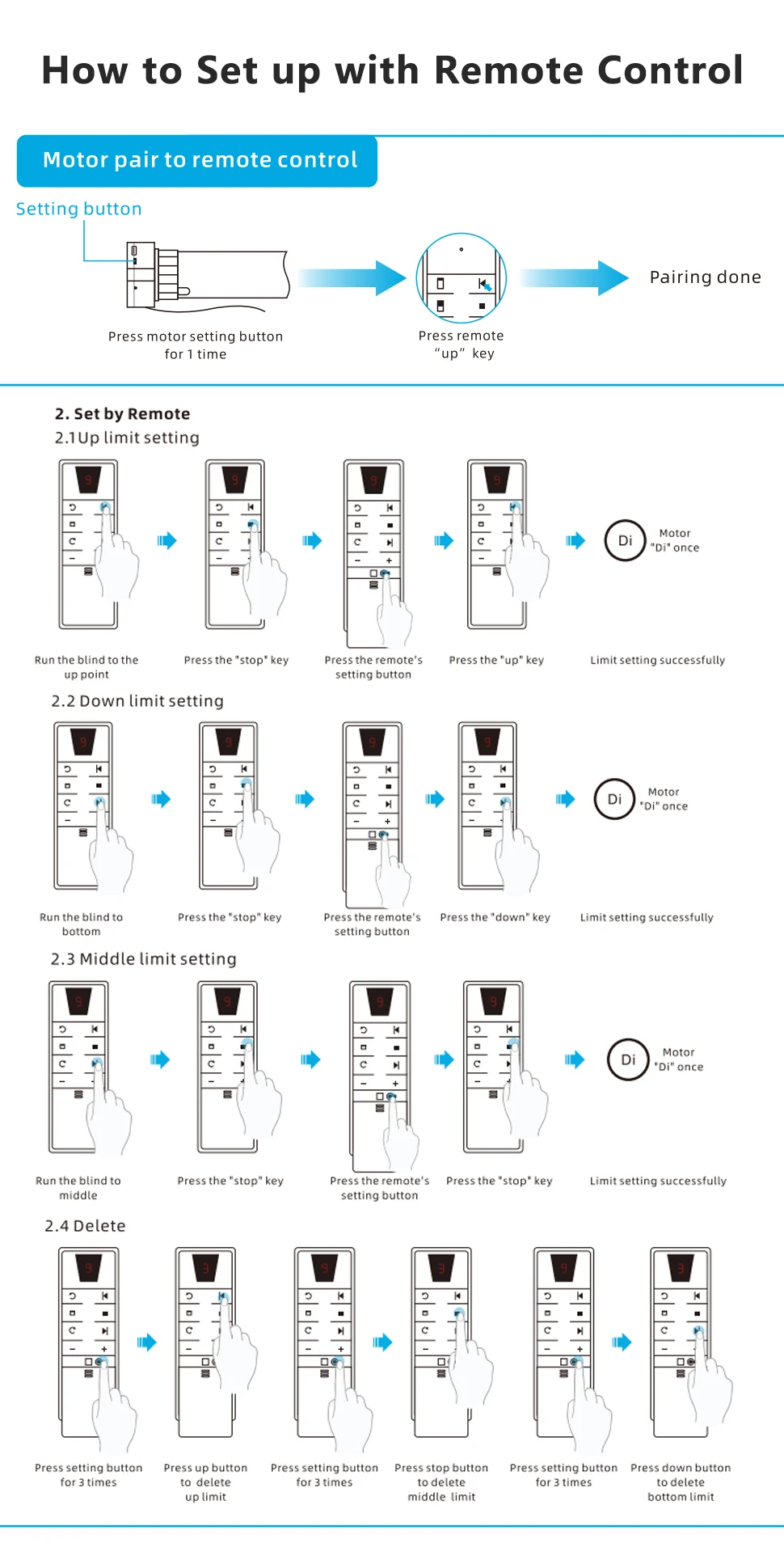 • Built-in RF remote control, easy to install and set up, reduce workload. widely used in indoor hollow blinds, indoor small aluminum, wooden blinds, etc., with electronic limits.