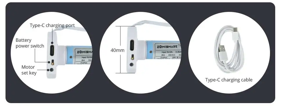 Smart Roller Shade Motor Electric Motorized Zigbee Recharge Motor for 17 25 28mm Tube Roller Shade Blind Motor Alexa Google
