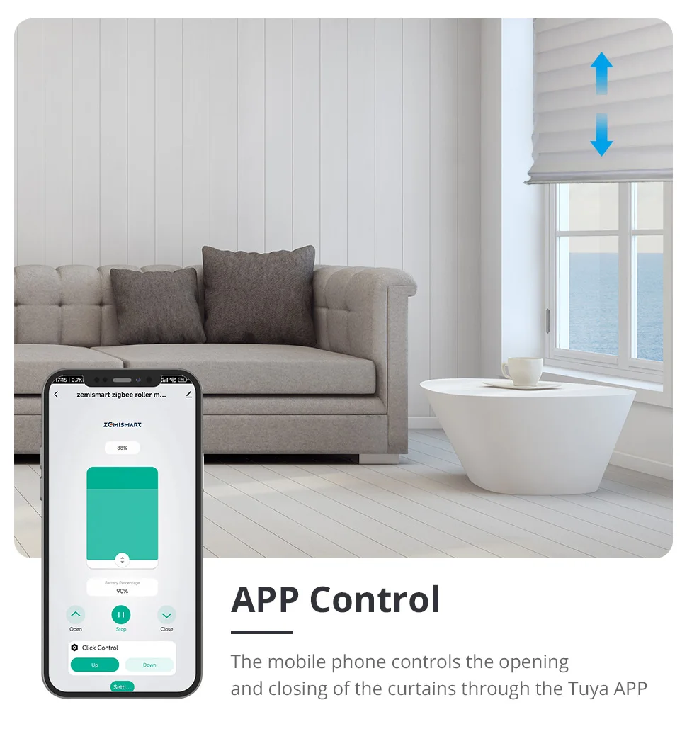 • Zigbee Control : Work with Tuya Zigbee hub, or M1/M6 Hub(work with homekit). You can control motor up or down through Voice or APP on your mobile phone.