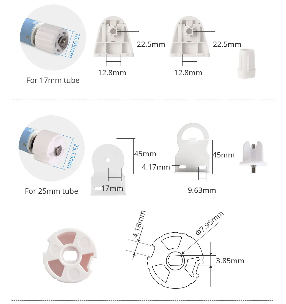 • Tubular motor for 17mm 25mm 28mm tube, carry up to 2kg / 2m roller shade.